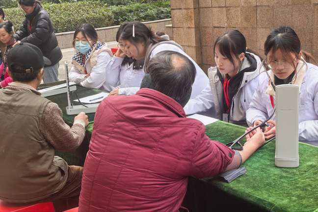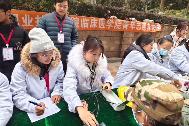 是义诊摊儿上的“笨笨老己”——测血糖时捏着采血笔半天不敢下针,量血压时盯着水银柱眼都不敢眨,被大爷大妈追着问“血糖高咋整”,慌得赶紧扒拉随身笔记现学现卖。可哪怕手忙脚乱,递上消毒棉片时那句“小年轻怪细心”,也能让所有忙碌都变得值得。活动结束后收到的社区爷爷手写感谢信,娟秀字迹里的肯定与感谢,不仅是对付出的嘉奖,更让我读懂了医学生的责任与荣光。